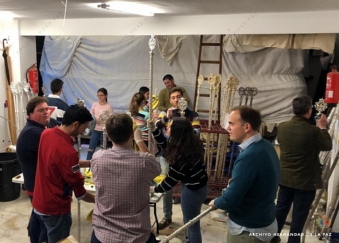 El grupo joven de la Hermandad dirigido por los priostes hace limpieza de los enseres de nuestra...