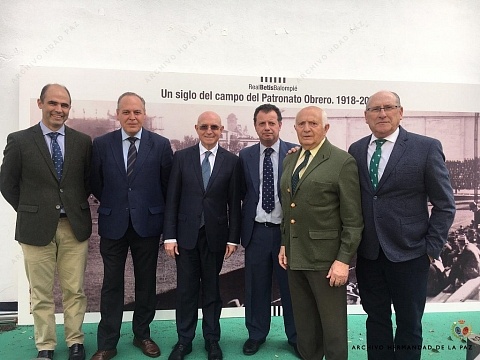Un grupo de Hermanos en representación de la Hermandad asistió al club Tenis Betis en la...