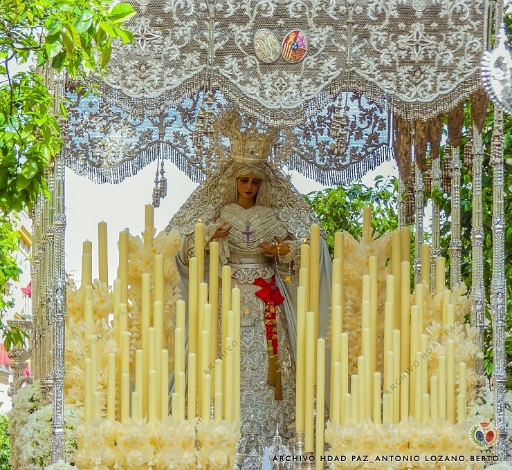 Paso de palio de María Santísima de la Paz, por la calle García Vinuesa. Domingo de ramos, 1 de abril de 2018.